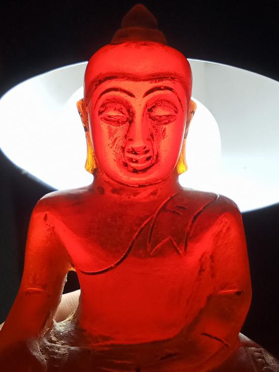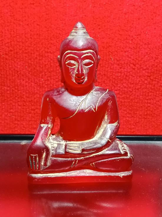 พระแก้วหุง แกะสลักมือ สวยงาม เก่าทรงคุณค่า วรรณะสีแดง ศิลปะล้านนา หน้าตัก 3 นิ้ว