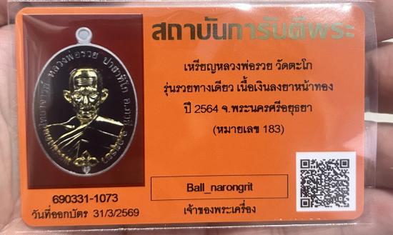 **เคาะแรกแดงครับ เหรียญหลวงพ่อรวย วัดตะโก รุ่นรวยทางเดียว เนื้อเงินลงยา หน้ากากทองคำแท้ ปี2564 หมายเลข 183 สภาพสวยๆ ไม่ผ่านการใช้งานครับผม
