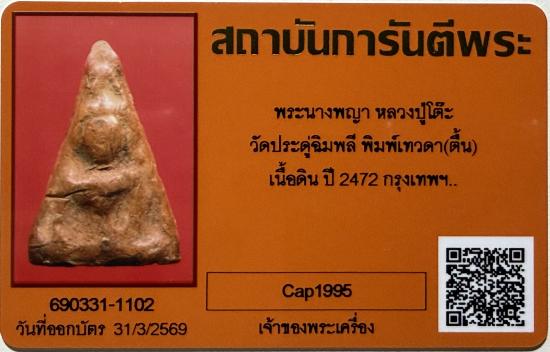**1400**พระนางพญาเนื้อดิน หลวงปู่โต๊ะ วัดประดู่ฉิมพลี พิมพ์เทวดา ปี 2472 พร้อมบัตร G-Pra