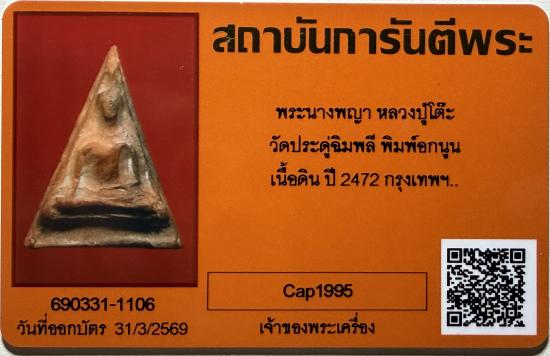 *1500*พระนางพญาเนื้อดิน หลวงปู่โต๊ะ วัดประดู่ฉิมพลี พิมพ์อกนูน ปี 2472พร้อมบัตรรับรองจาก G -Pra