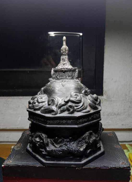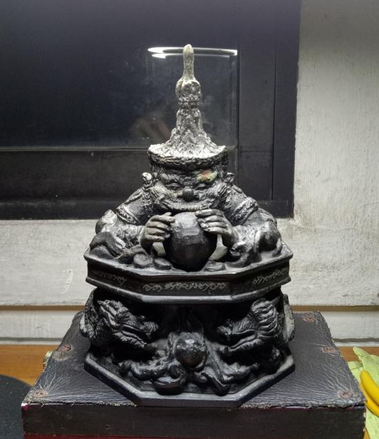พระราหู วัดศีรษะทอง อ.นครชัยศรี จ.นครปฐม รุ่น มังกรให้ลาภ เสาร์ 5 เดือน 5 ปี 55 โลหะ สูง 6 นิ้ว ฐาน 4.5X4.5 นิ้ว