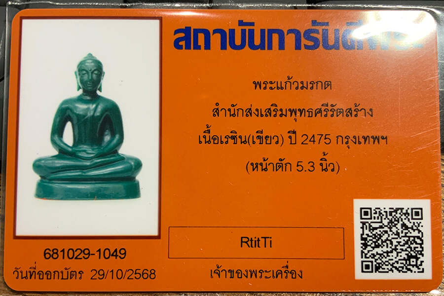 DeDee พระแก้วมรกต ปี ๒๔๗๕ สำนักส่งเสริมพุทธศรีรัตน เนื้อเงินเรชินเขียว DeDee