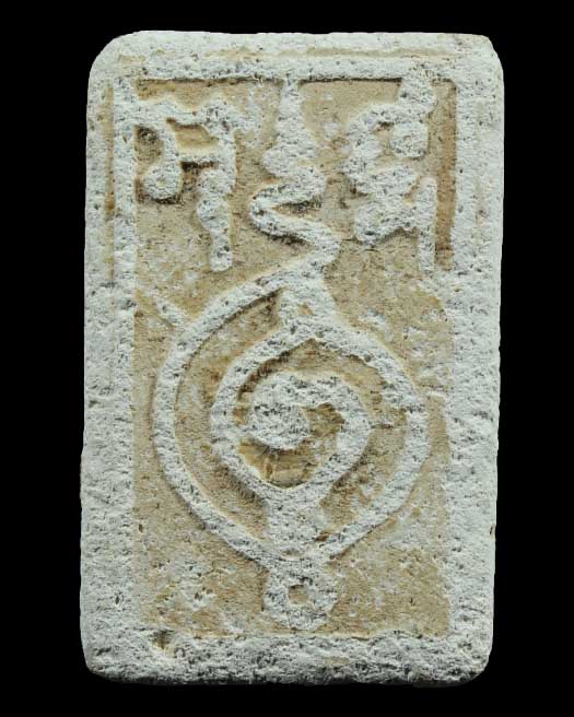ด้านซ้ายมือมีคาถา ๕ ตัว อ่านในแนวตั้งจากบนลงล่างว่า "ยะ ปะ ฏิ รู ปัง" ส่วนด้านขวามือมีอักขระ ๖ ตัว อ่านในแนวตั้งจากบนลงล่างว่า "พระ อะ ระ หัง ติ"