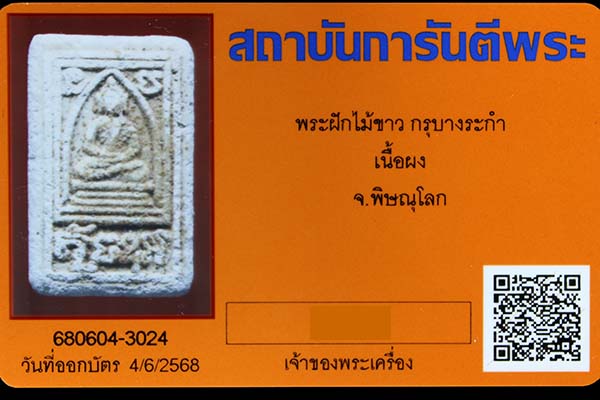 พระฝักไม้ขาว กรุบางระกำ(วัดสุนทรประดิษฐ์) จ.พิษณุโลก สภาพสมบูรณ์ พร้อมบัตร G-pra ครับ