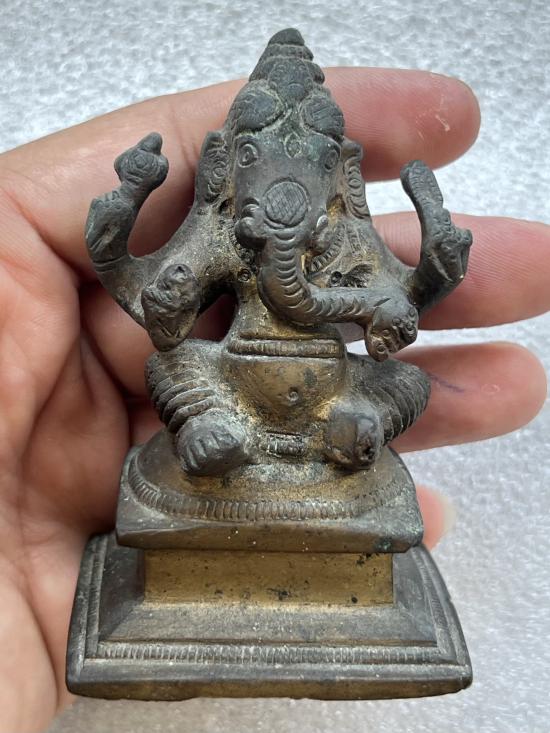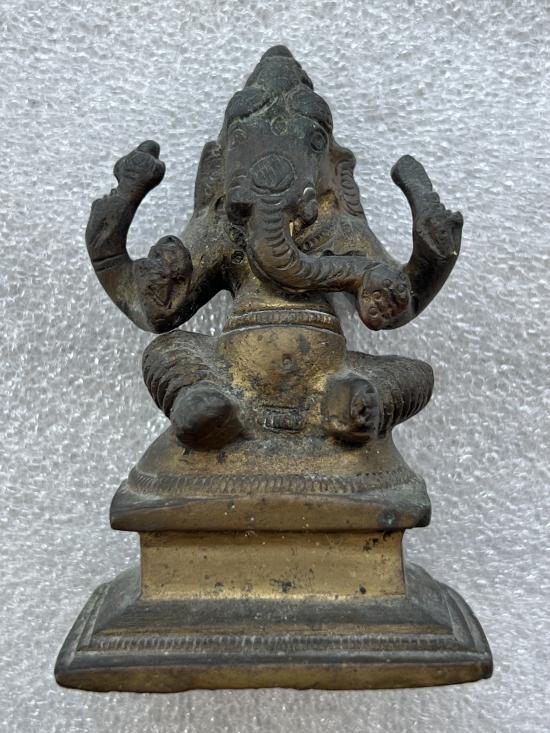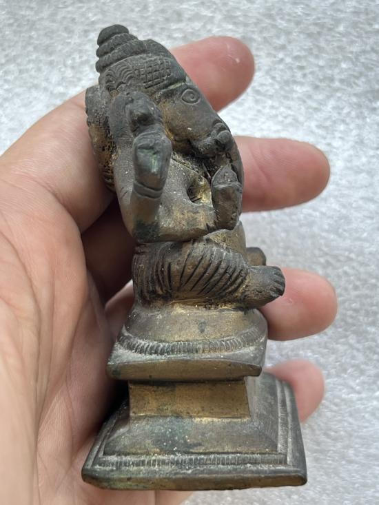 รูปหล่อพระพิฆเนศ เนื้อทองเหลือง ไม่ทราบรายละเอียด ฐาน2นิ้ว สูง3นิ้วนิดๆ