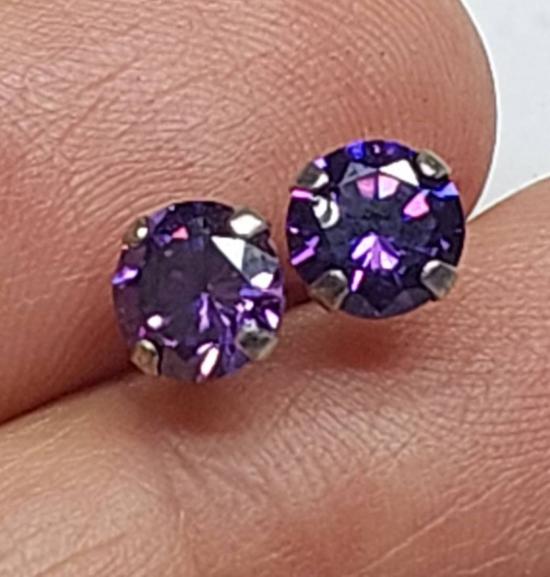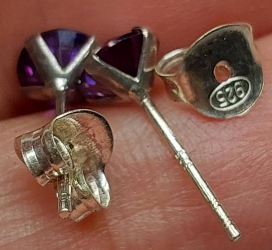 ***วัดใจ***ต่างหูอาเมนทิสต์ (Amethyst) เรือนเงินแท้ 925