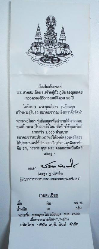 พระกริ่งพระพุทธโสธร ภปร. รุ่นย้อนยุค ครองสิริราชสมบัติครบ 50 ปี ปี2539 เนื้อเงิน พิมพ์ใหญ่ เลข 4250 พร้อมกล่อง สภาพสวย..เคาะเดียว..วัดใจ..ครับ |