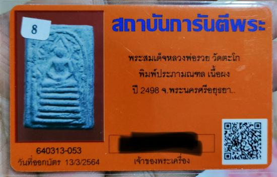 หลวงพ่อรวย วัดตะโก จ.อยุธยา พระสมเด็จ พิมพ์ประภามณฑล รุ่นแรก ปี 2498 |