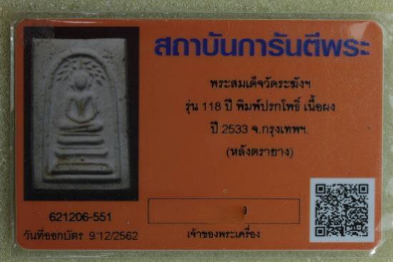 สมเด็จวัดระฆัง อนุสรณ์ 118ปี พ.ศ.2533 พิมพ์ปรกโพธิ์ พร้อมบัตร