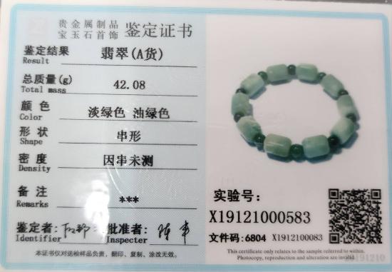 ข้อมือ หยกเขียว Green Jadeite พร้อมบัตร |