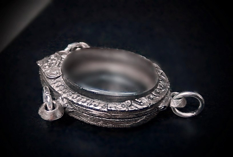 ตลับเงินผสมมือ2ใส่เหรียญรูปไข่3ห่วงขนาดตามภาพถ่ายเคาะเดียวครับ |
