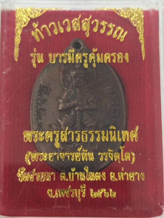 เหรียญ ท้าวเวสสุวรรณ รุ่นบารมีครูคุ้มครอง พระอาจารย์ทิน วัดชายนา เพชรบุรี (ศิษย์สายตรงหลวงพ่อตัด) ปี2562 เนื้อทองแดงรมดำ |