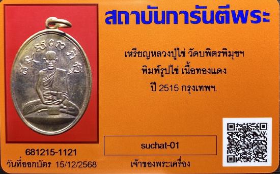 เหรียญหลวงปู่ไข่ วัดบพิตรพิมุขฯ เนื้อทองแดง ปี 2515 จ.กรุงเทพฯสภาพสวยครับ