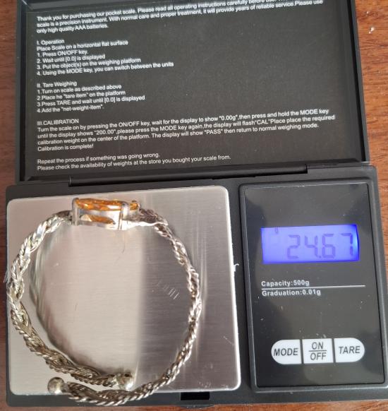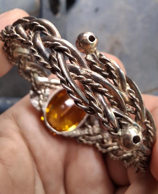 กำไลเงิน925 หัวบุษราคัม สวยงาม น้ำหนักเงินรวมหัว 24.67 กรัม