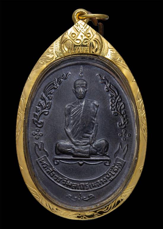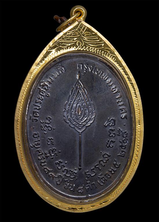 เหรียญหลวงปู่โต็ะ พิมพ์หลังพัดยศ รูปไข่อุ้มดาว เนื้อทองแดงปี 2518 วัดประดู่ฉิมพลี
