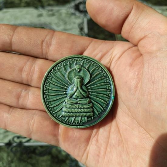 พระปิดตาพังพะกาฬ ปี46 วัดมะม่วงขาว พิเศษ พิมพ์กรรมการเคลือบเขียว 2 หน้า ฝังตะกรุด