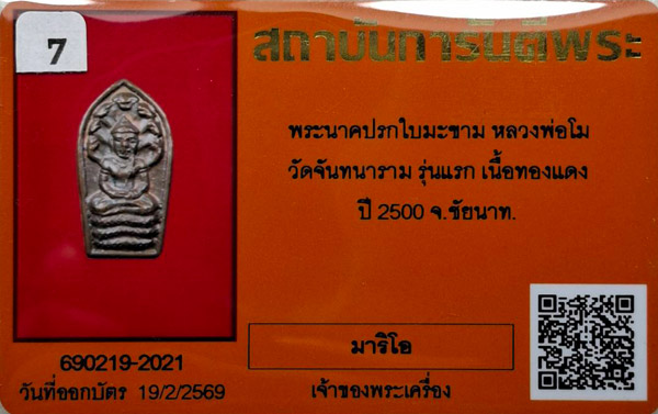 พระนาคปรกใบมะขาม หลวงพ่อโม วัดจันทนาราม รุ่นแรก เนื้อทองแดง ปี 2500 จ.ชัยนาท ศิษย์..หลวงปู่ศุข วัดปากคลอง หลวงพ่อเดิม วัดหนองโพธิ์