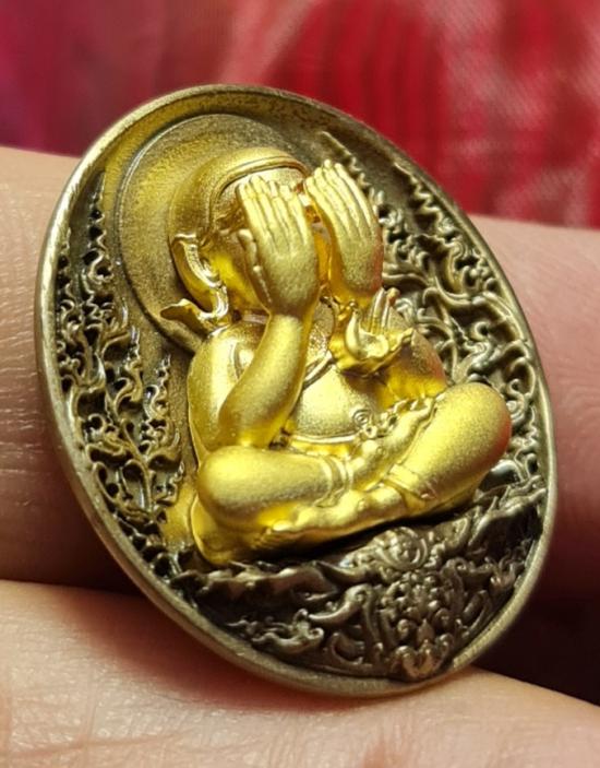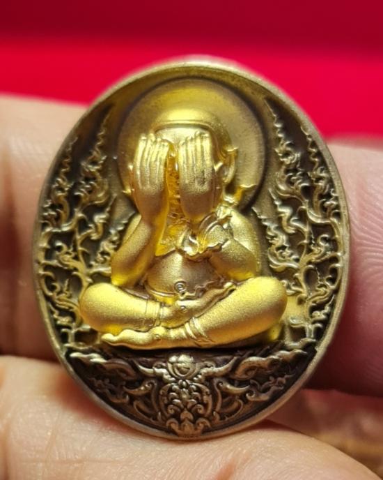 ปิดตาอภิมหาเศรษฐี วัดถ้ำสิงห์โตทองพิมพ์เล็ก เนื้อบรอนช์ซาติต องค์พระกะไหล่ทอง เดิมๆ ครบชุด