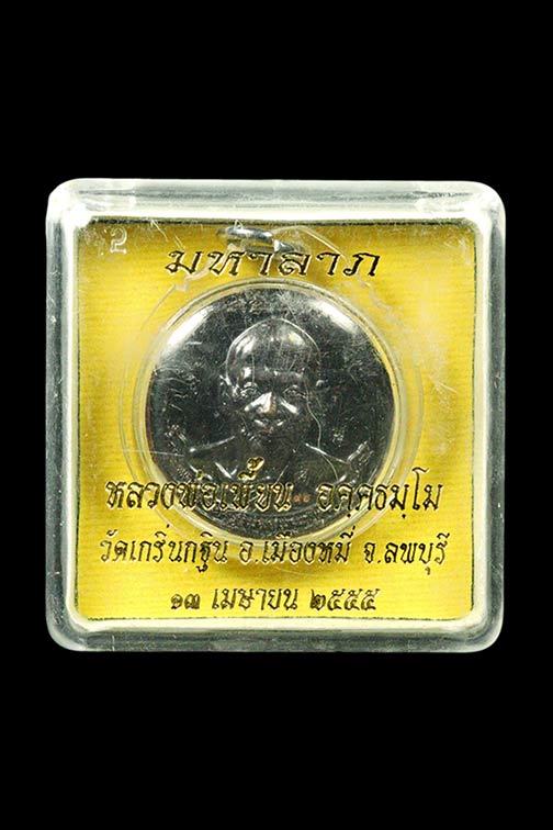เหรียญ มหาลาภ หลวงพ่อเพี้ยน วัดเกริ่นกฐิน จ.ลพบุรี ปี2555 เลี่ยมพร้อมกล้อง เนื้อทองแดง