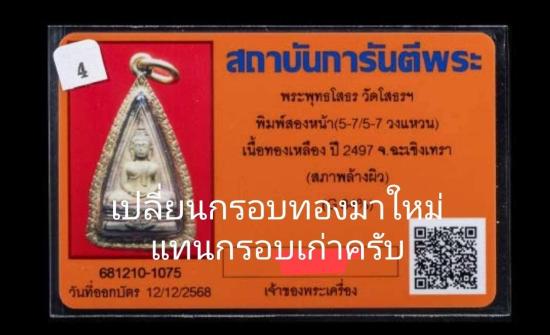 หลวงพ่อโสธรสองหน้า ปี 2497 พิมพ์5-7 5-7 วงแหวนเต็ม นิยมสุด พระสวยตามสภาพในบัตรการันตีพระครับ (เลี่ยมทองใหม่สวยๆ) พร้อมบัตรการันตีพระ