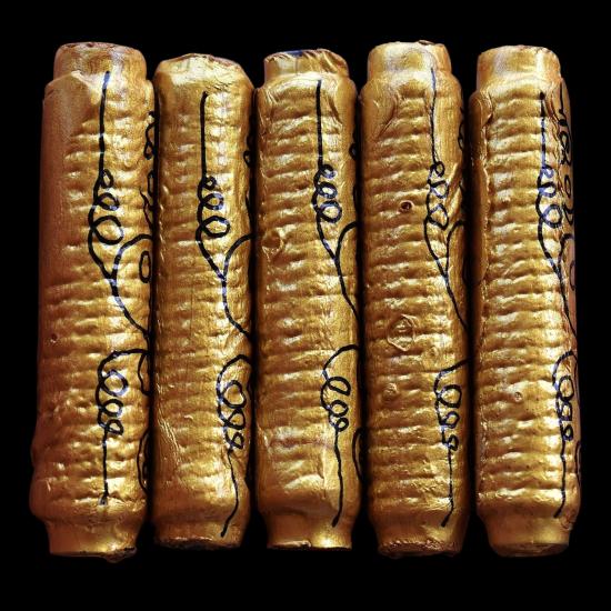 ชุด 5 ดอก...ตะกรุดกาคาบทรัพย์ ปี 2554 หลวงปู่น้อย วัดบ่อหลวง จ.เพชรบุรี พร้อมซองเดิมจากวัด สภาพพระตามรูปทุกประการ ( ทาทองจารยันต์ ขนาดยาว 2 นิ้ว )