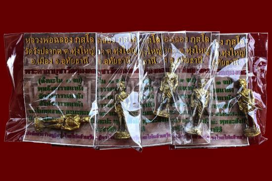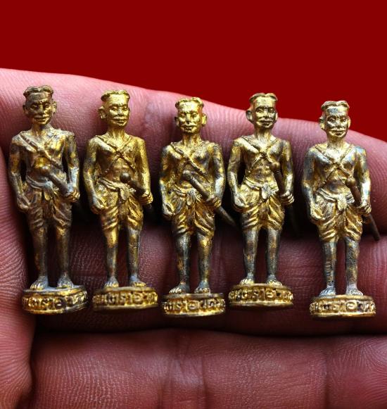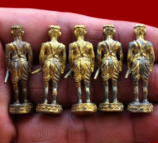 ชุด 5 องค์...พยนตราอาคม รุ่นแรก เนื้อทองระฆังเก่า (ขนาดห้อยคอ) ปี 2557 หลวงพ่อฉลอง วัดวังปลากด จ.อุทัยธานี พร้อมซองรูปใบคาถาเดิมจากวัด สภาพพระตามรูปที่ลงทุกประการ (ขนาดสูงประมาณ 3.8 ซม.)