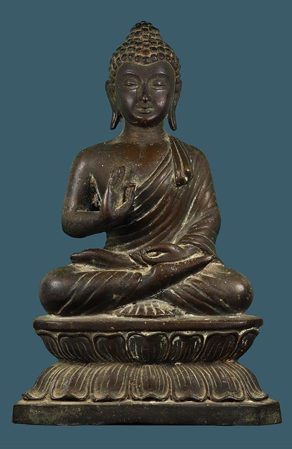 100 / พระบูชาปางประทานพรบัวจีน เนื้อโลหะเข้มๆเก่ามีอายุ ก้นดินไทย หน้าตัก 5 นิ้ว สวยเดิมผิวหิ้งๆครับ
