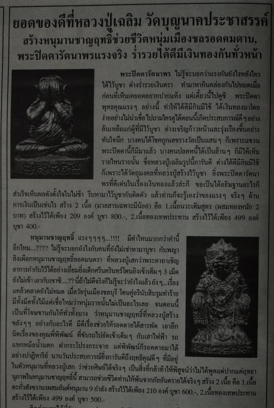 หนุมานชาญฤทธิ์ ปี 2556 หลวงปู่สร้างไว้ 2 เนื้อ คือ.