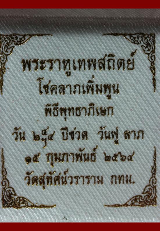 พระราหูเทพย์สถิตย์ รุ่นโชคลาภเพิ่มพูน เนื้อกะลาแกะ พ.ศ. 2564 วัด / กรุ วัดสุทัศนเทพวรารามราชวรมหาวิหาร จังหวัด กรุงเทพมหานคร |