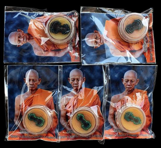 ชุด 5 ตลับ...สีผึ้งสารพัดนึก บรรจุพระนาคปรกใบมะขาม เนื้อทองฝาบาตร + เนื้อทองแดง ปี 2557 หลวงปู่สมชาย วัดคงคา จ.กาญจนบุรี พร้อมซองรูปเดิมจากวัด |
