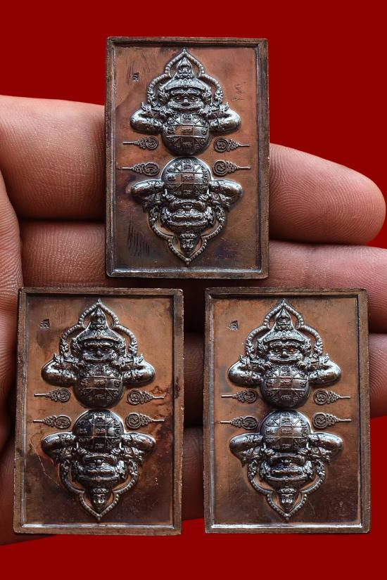 ชุด 3 องค์...เหรียญพระราหูทรงครุฑเสริมชะตา เนื้อทองแดงรมดำ ปี 2555 หลวงปู่สมชาย วัดคงคา จ.กาญจนบุรี พร้อมซองรูปเดิมจากวัด