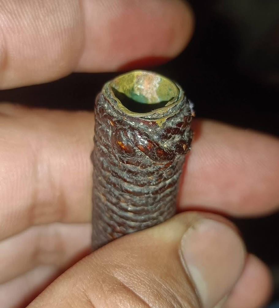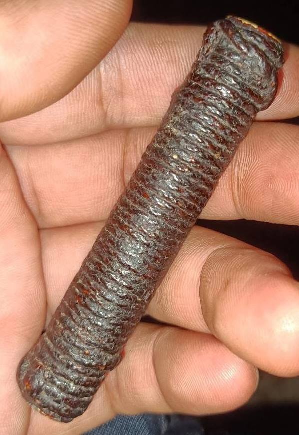 ตะกรุดหลวงพ่อทบธัมมปัญโญ(ยุคกลาง) เนื้อทองฝาบาตร พันลายมาตราฐานสากล ลงรักยางไม้