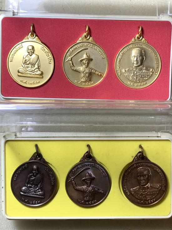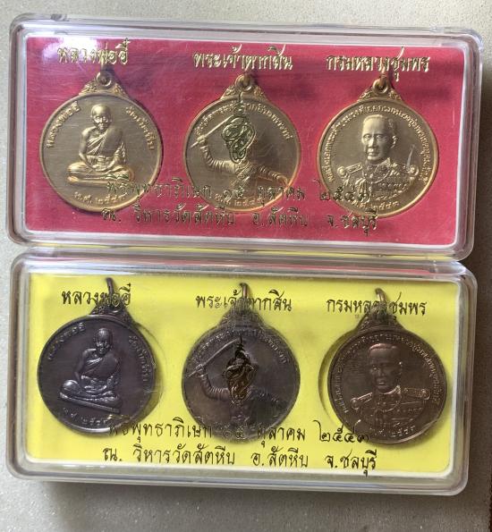 ชุดเหรียญหลวงพีออี๋ พระเจ้าตากสิน กรมหลวงชุมพร จัดสร้างโดยหน่วยสงครามพิเศษทางเรือ ปลุกเสกที่วัดสัตหีบ ปี 2543 พิมพ์ใหญ่ เคาะเดียว 2 ชุด
