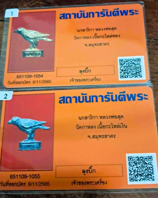 สาริกากระไหล่เงิน+กะไหล่ทองหลวงพ่อสุดวัดกาหลง พร้อมกล่องเดิมสภาพสวยเดิมๆ มาพร้อมใบรับรองจากเวปทั้ง2ใบ |