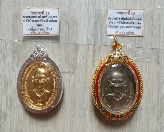 ชื่อพระเครื่อง วัดใจเคาะเดียวแดงจ้า เหรียญแปะโรงสี ออกวัดศาลเจ้า เนื้อนวะชุบทองคำแท้+อัลปาก้าไม่ตัดปีก หลังแปะก้อนเงินก้อนทอง มวลสารผงธูป พร้อมกรอบ ทั้ง2องค์ เคาะเดียวแดงจ้า