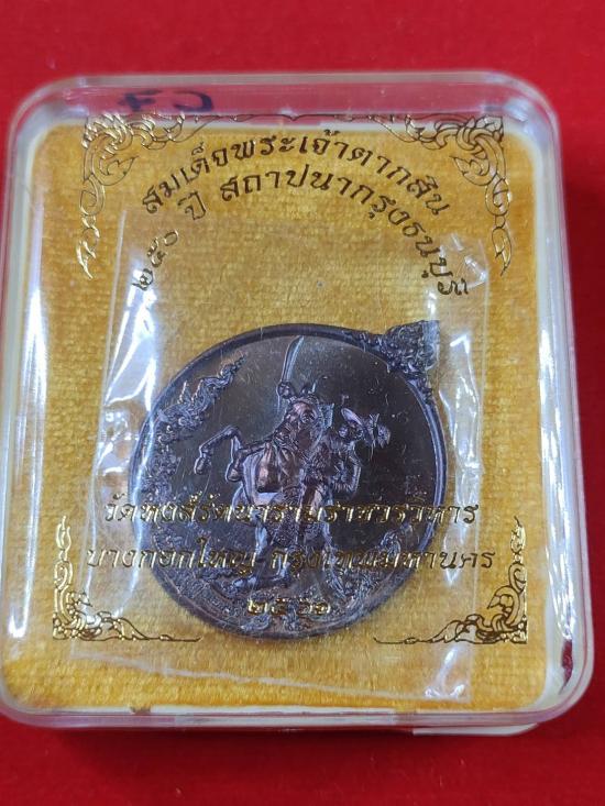 ขออนุญาตอาจารย์เฉลิมชัย เปิด เหรียญสมเด็จพระเจ้าตากสินมหาราช 250 ปี สถาปนากรุงธนบุรี วัดหงส์รัตนารามราชวรวิหาร เนื้อทองแดงรมดำ พิมพ์B ปี61 เลข5275 มีกล่อง |