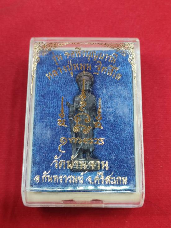 รูปหล่อพิมพ์ยืน หลวงปู่หมุน รุ่นพึ่งบารมี ปี2557 วัดบ้านจาน จ.ศรีสะเกษ เนื้อทองเหลืองรมดำ กล่องเดิม องค์ที่3