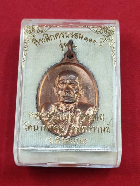 เหรียญรุ่นแรก (ตอกเลข 1 ย้อนยุค ว.จ.) เนื้อทองแดง รุ่นหัวใจเศรษฐี หลวงปู่หมุน วัดบ้านจาน ศรีสะเกษ กล่องเดิม องค์ที่2