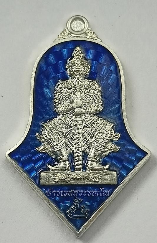 เหรียญท้าวเวสสุวรรณ "วิมุตติสุข" หลวงพ่ออิฎฐ์ วัดจุฬามณี เนื้อเงินลงยา เบอร์ 167 พร้อมกล่องครับ (S)