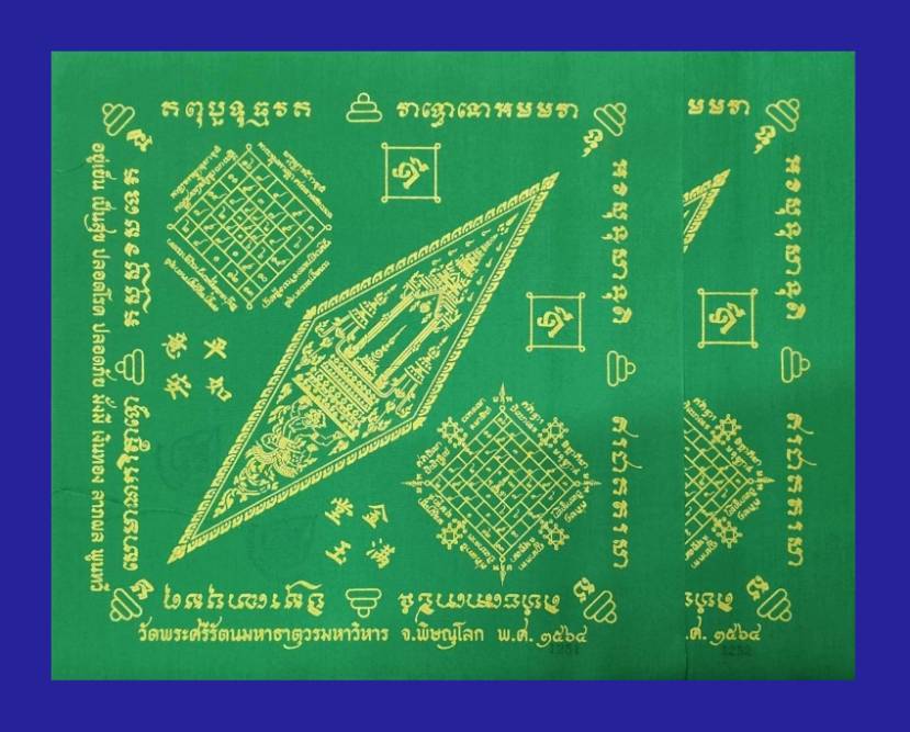 ( 2 ผืน สีเขียว ) ผ้ายันต์ อกเลา ขนาด 30CM x 30 CM ปี 2564 วัดพระศรีรัตนมหาธาตุวรมหาวิหาร จ.พิษณุโลก จัดสร้างเอง