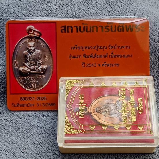 เหรียญมนต์พระกาฬ หลวงปู่หมุน ฐิตสีโล วัดบ้านจาน ปี 2543 เนื้อทองแดง พร้อมกล่อง พร้อมบัตรรับประกัน