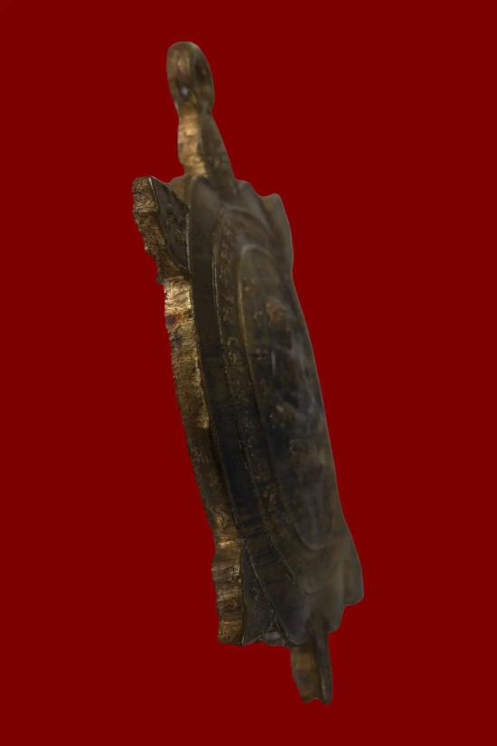 เหรียญพญาเต่าเรือน เนื้อฝาบาตร รุ่นแช่น้ำมนต์ สะดุ้งกลับ ตอกโค๊ต หลวงปู่หลิว วัดไร่แตงทอง สร้างประมาณปี พ.ศ. 2536