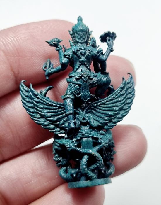 พระนารายณ์ทรงครุฑ รุ่นแรก หลวงพ่อสิน วัดละหารใหญ่ เนื้อสนิมเขียว พร้อมกล่อง