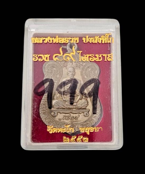 หลวงพ่อรวย วัดตะโก จ.อยุธยา ไตรมาส 89 ปี 2553 เนื้ออัลปาก้า เลข 999 พร้อมกล่อง