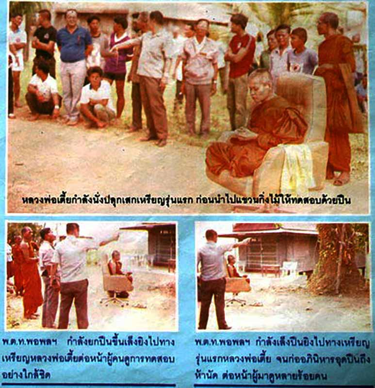 *** เหรียญรุ่นนี้หลังปลุกเสกแล้ว ได้ทดลองยิงด้วยปืน แต่กระสุนไม่ออกถึง5นัด หลวงพ่อเตี้ย ท่านเป็นสหธรรมิกกับ หลวงพ่อกวย วัดโฆสิตาราม หรือ วัดบ้านแค ***
