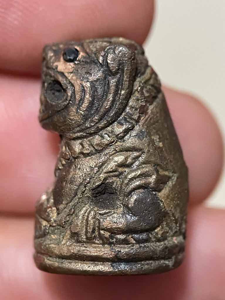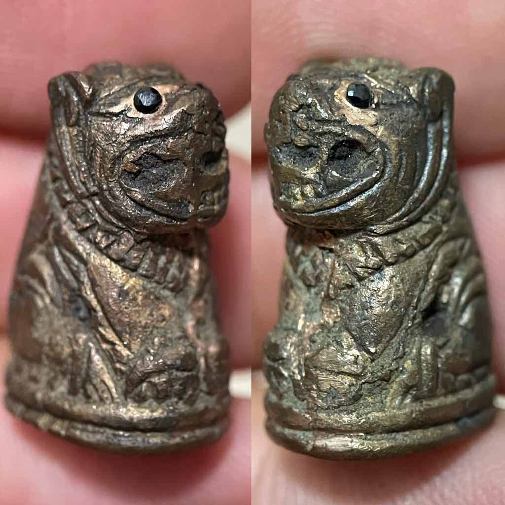 800.- เสือเฮง เนื้อสัตตะโลหะ หล่อโบราณ เททองภายในวัด ตาฝังพลอยดำ(นิล) หลวงพ่อสมชาย วัดปริวาส ปี 55 ผสม ทองคำ(บางสะพาน),เงิน(พดด้วงสมัยอยุธยา),ทองแดง(จากสายล่อฟ้าอุโบสถหลังเก่า) ตอกโค๊ด / รันเลข หายาก