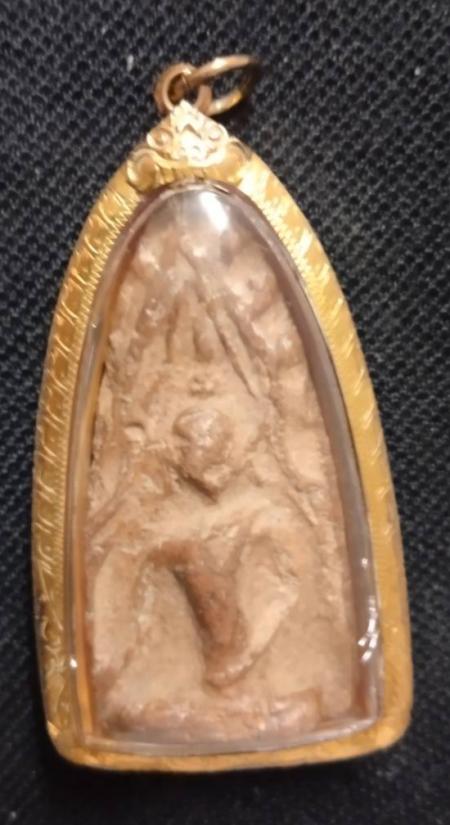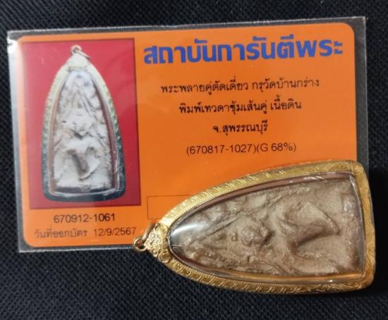 พระขุนแผน กรุวัดบ้านกร่าง พลายคู่ตัดเดี่ยว พิมพ์เทวดาซุ้มเส้นคู่ เนื้อดิน เลี่ยมทอง พร้อมบัตรรับรอง