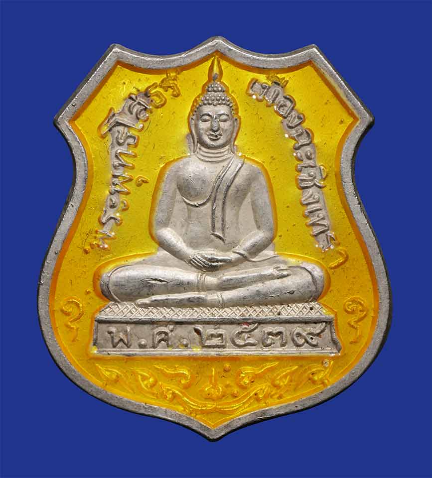 เหรียญ อาร์ม หลวงพ่อพระพุทธโสธร ปี 2539 เนื้อเงิน ลงยาสีเหลือง สภาพสวย