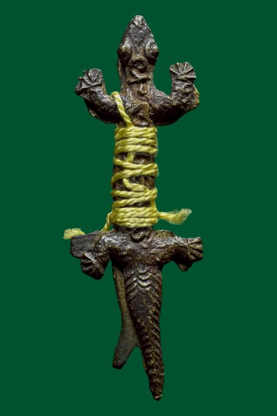 จิ้งจกหลวงพ่อบุญชู วัดหนองโรง จ.กาญจนบุรี เนื้อทองผสมหล่อโบราณ แบบเป็นคู่ตัวผู้ - ตัวเมีย