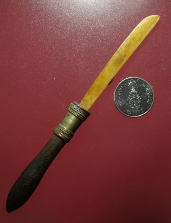 มีดหมอ ด้ามไม้ ใบมีดทำจากงา ยาวตลอดทั้งเล่ม 4.5 นิ้ว เฉพาะใบมีดทำมาจากงา ยาว 2.4 นิ้ว โต 0.6 ซม ไม่ทราบสำนัก รบกวนพิจารณาให้ชอบก่อนเคาะจะได้ไม่เสียเวลา ขอท่านที่รักชอบพร้อมโอนจริงๆครับ